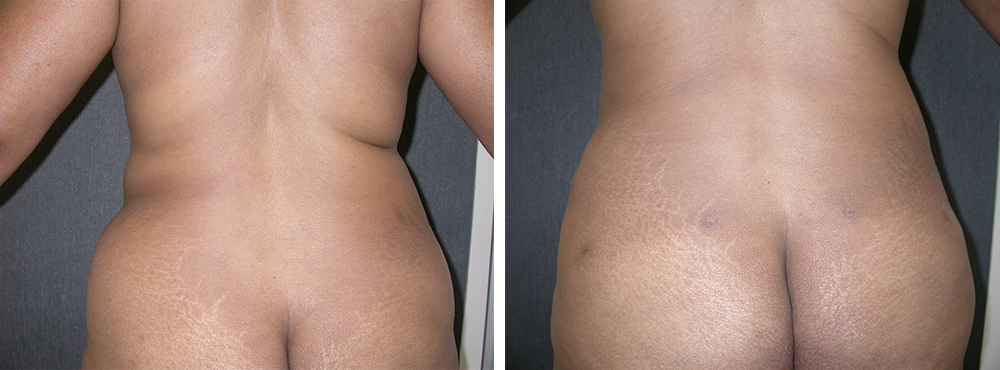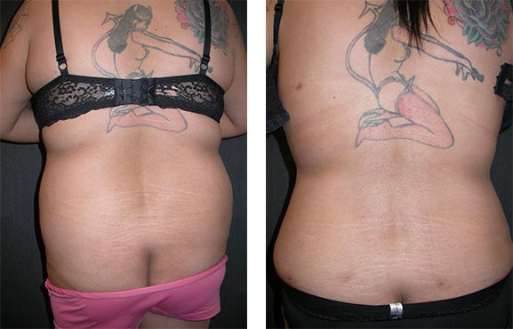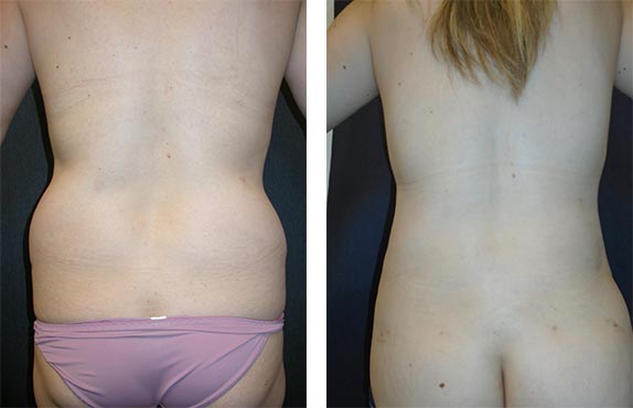 This young mother complained of excess fat on her back and hips. Power assisted liposuction improved her shape, and the small scars will continue to fade with time.